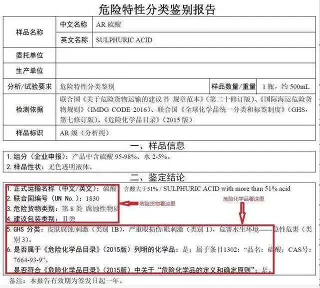但上述條目繁雜,有時難以把握,可以向有資質的機構申請危險特性鑒別報告,同時鑒別危險貨物種類和危險化學品的危險特性。