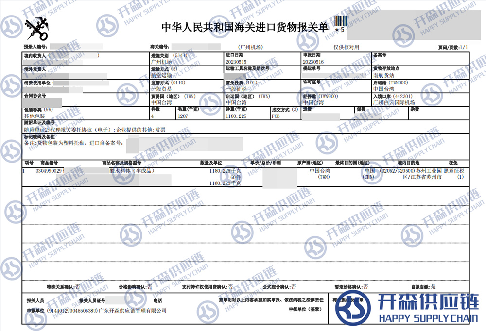 一、中國臺灣化妝品半成品進口報關(guān)代理案例詳情