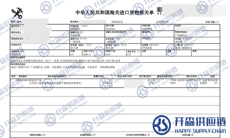 原文標題:意大利磨皮生產線進口報關清關代理服務【經典案例】