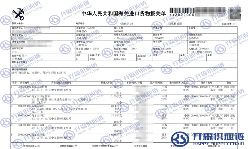 原文標題:高爾夫球桿用品進口報關清關代理服務【經典案例】