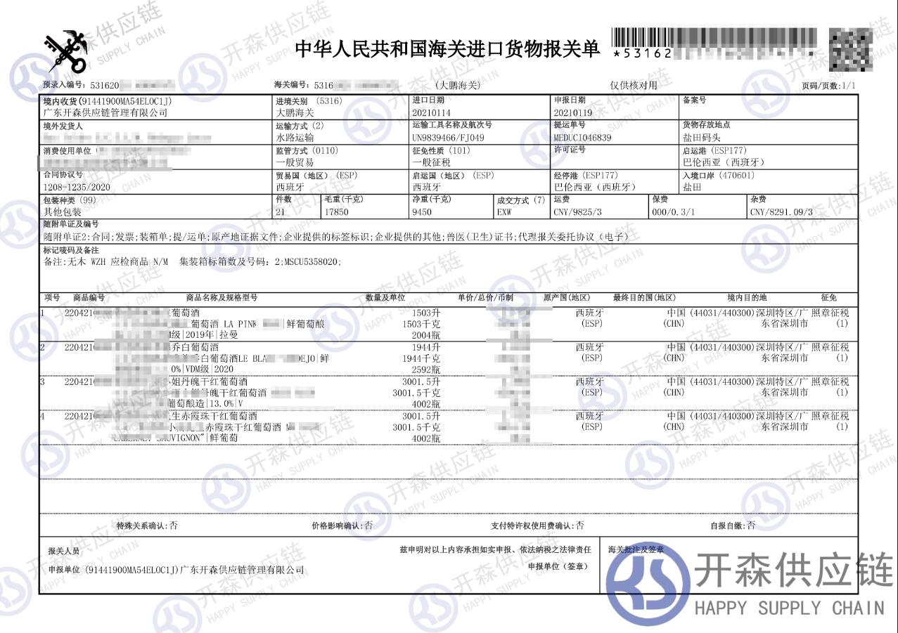 【導讀】您正在閱讀的是關于【進口案例】西班牙葡萄酒進口報關代理服務的內容,本文由開森葡萄酒進口報關代理小編整理編寫;